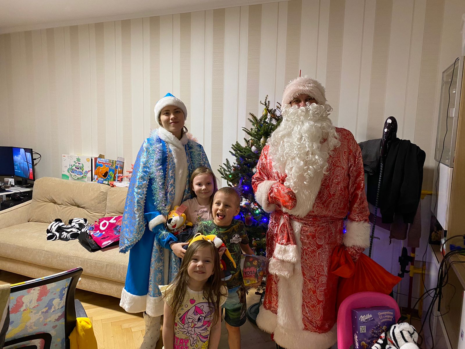 Ольга Антонова | 2023-01-07Отличные поздравления получил наш мальчик. Дед Мороз (Степан) и Снегурочка (к сожалению, не знаем ее имени) мастерски справились с нашим курьезом (подарок задержала компания из Китая), устроили нашему Мише конкурс и танцы. Настроение у всех нас было отличное!